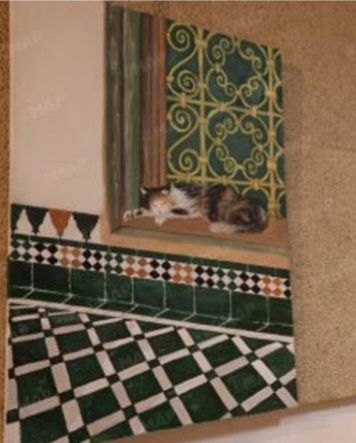 وتعيد بعض الإبداعات، بأسلوب فني دقيق، توظيف الزخارف الهندسية لفن الزليج، أحد رموز الصناعة التقليدية المغربية، ضمن مقاربات معاصرة تتناغم فيها الألوان والتناسق البصري مع تركيبات تجريدية، فيما تستكشف أعمال أخرى تفاعل الظل والنور في العمارة الفاسية، مبرزة غنى الأنسجة والأحجام.